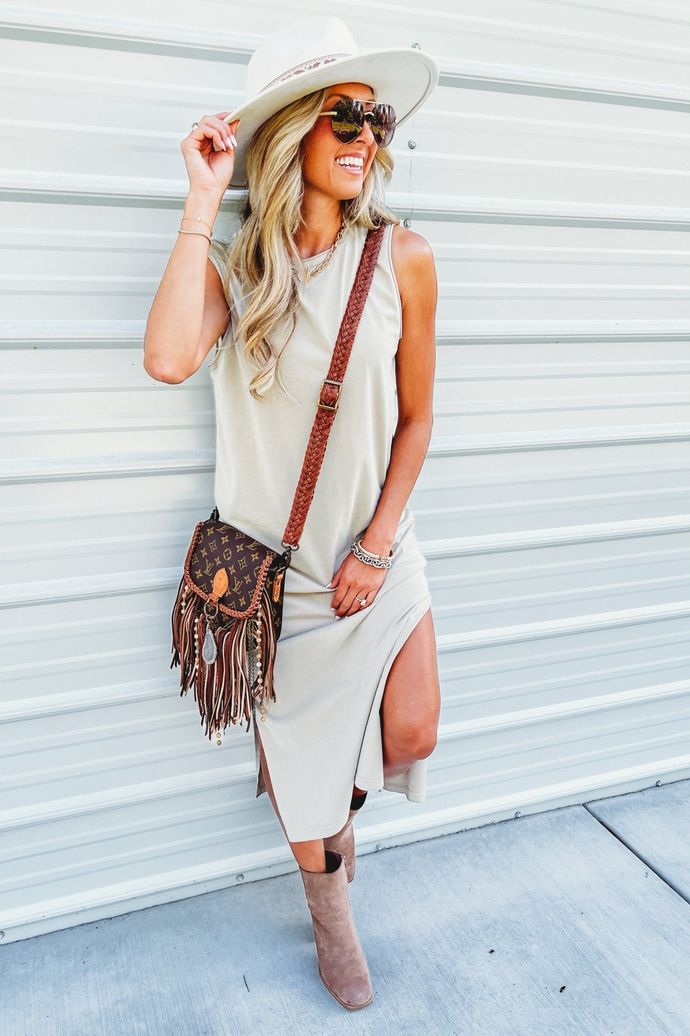 On Repeat Mineral Washed Muscle Tank Taupe Midi Dress