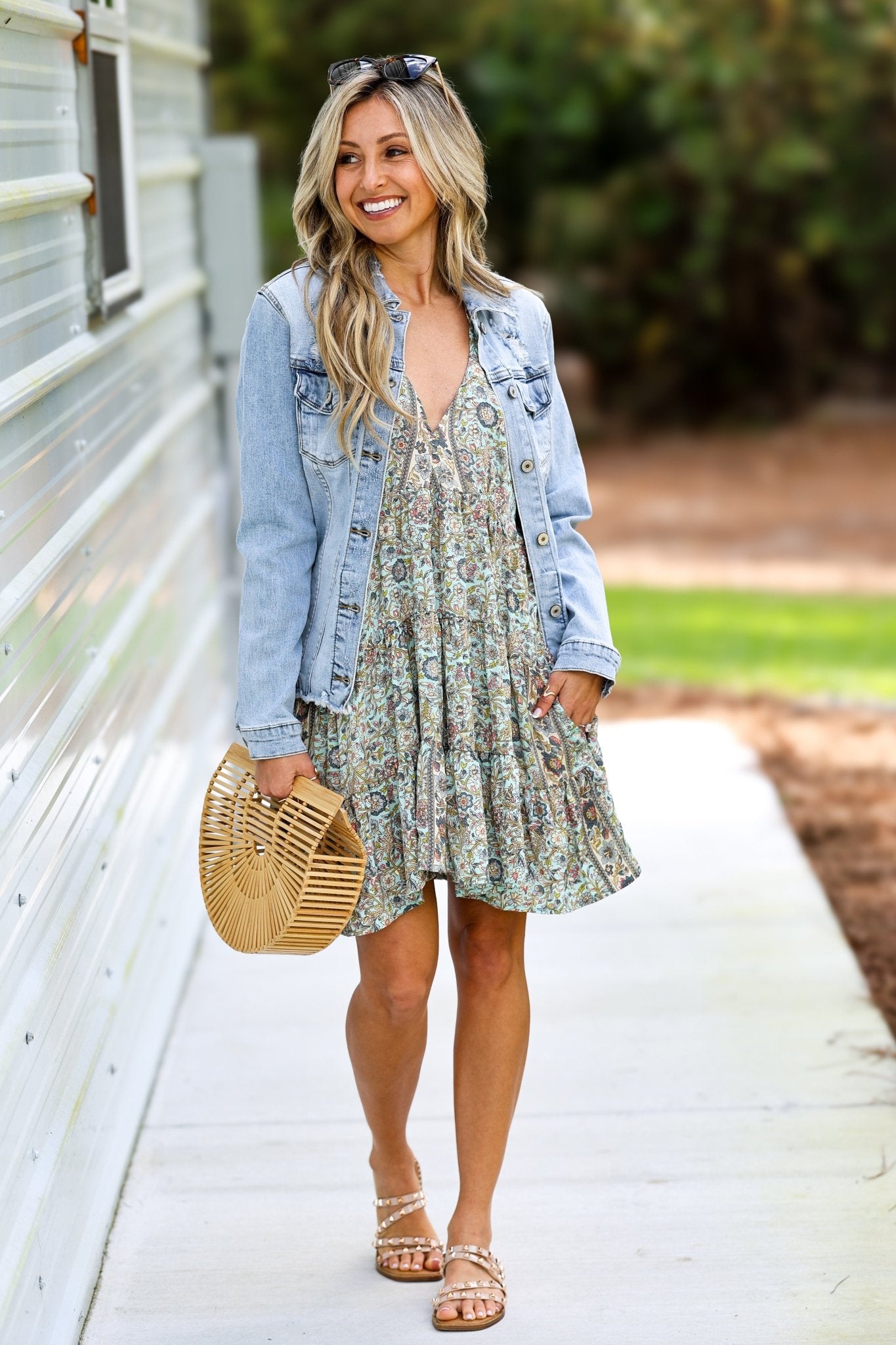 Turn heads with the Whimsical Vibes Racerback Dress- a vibrant blend of seaside blue tones and mixed prints for the ultimate free-spirited vibe. With a flattering deep V neckline, adjustable straps, and a flirty tiered skirt, this dress was made for beach strolls, festivals, and sunshine-filled days. Pair it with sandals and a straw bag to complete the look.