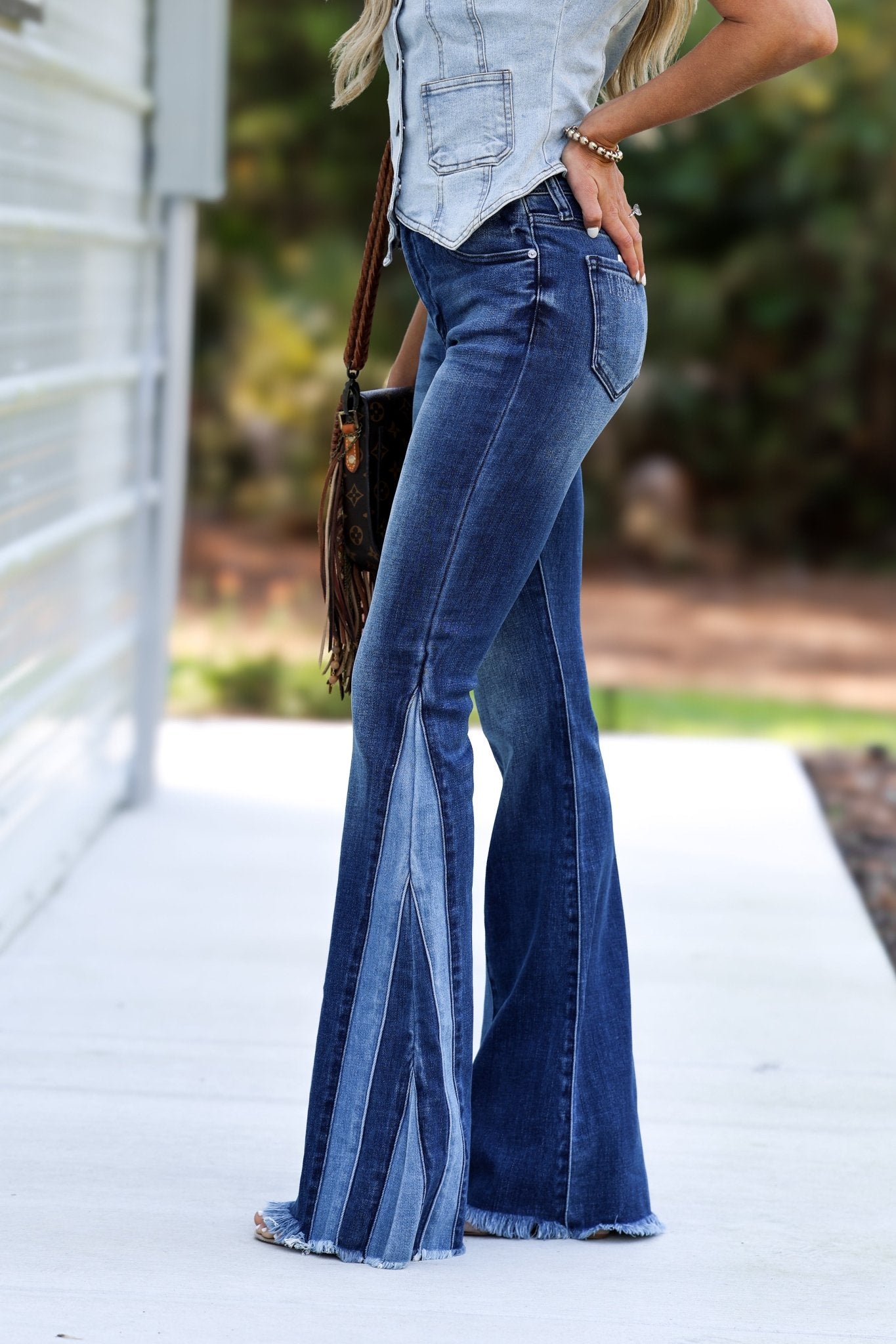The Mabel High Rise Pieced Flare Jeans bring modern western charm with their flattering fit and unique side piecing detail.