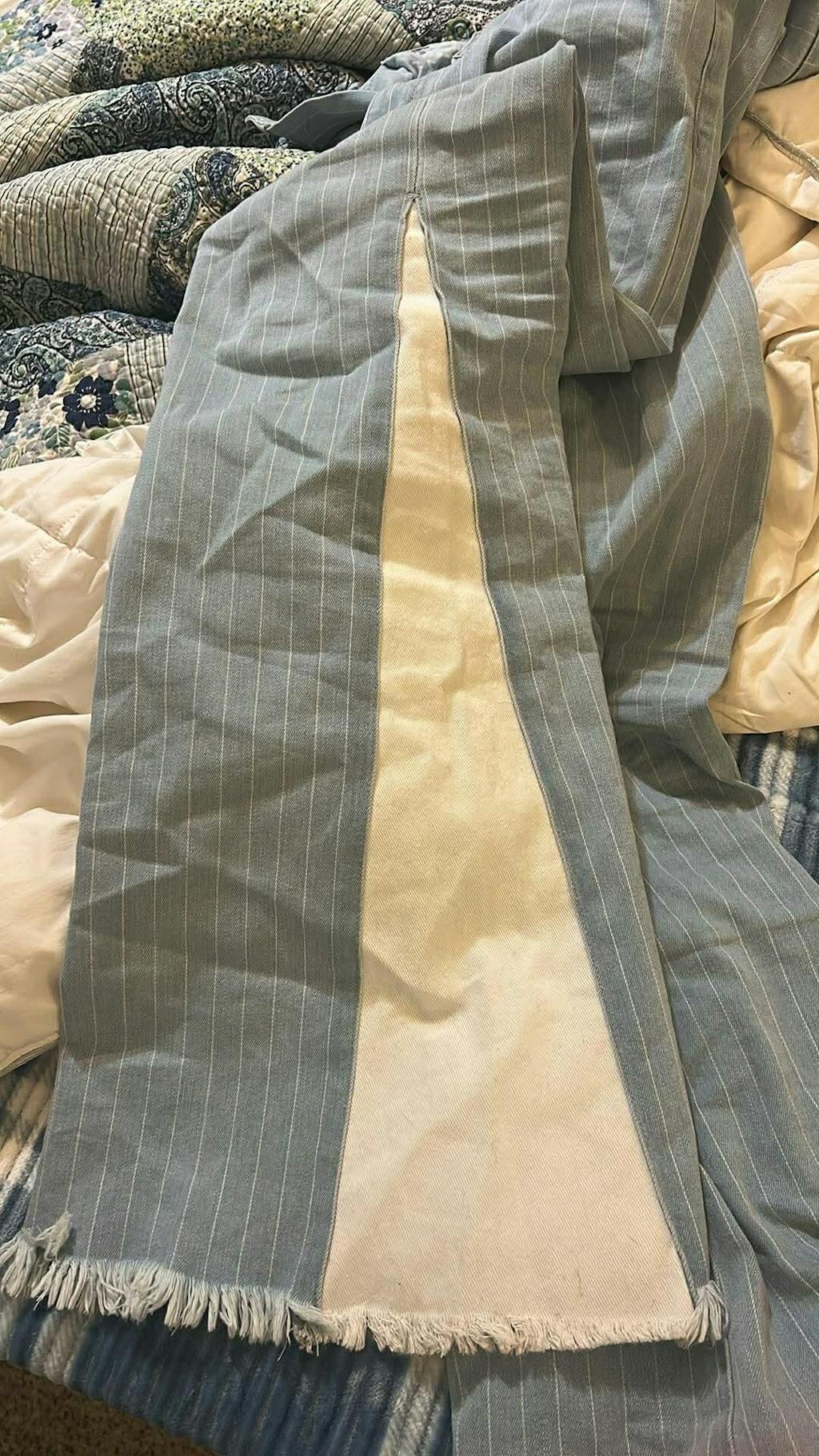 • White side panel detail with frayed hem