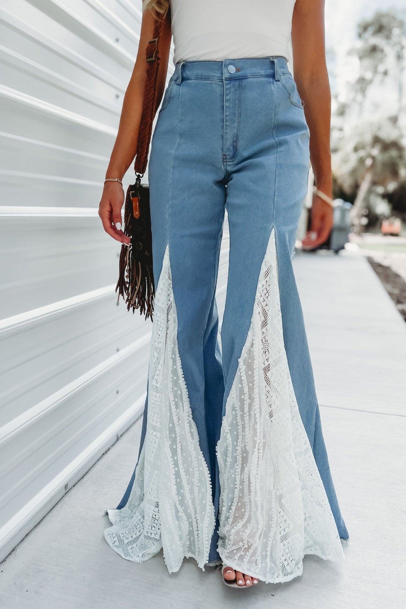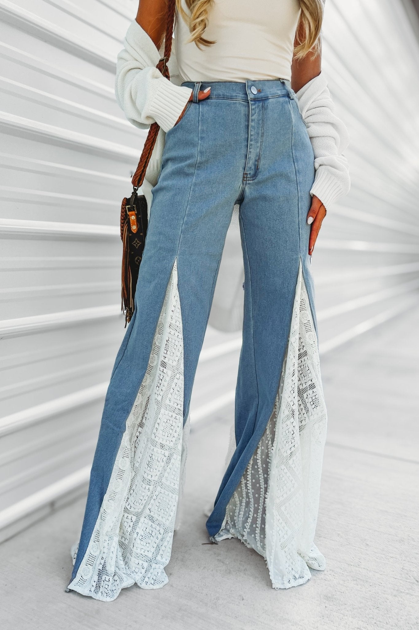 The Rylee Lace Detail Wide Leg Super Flare Jeans