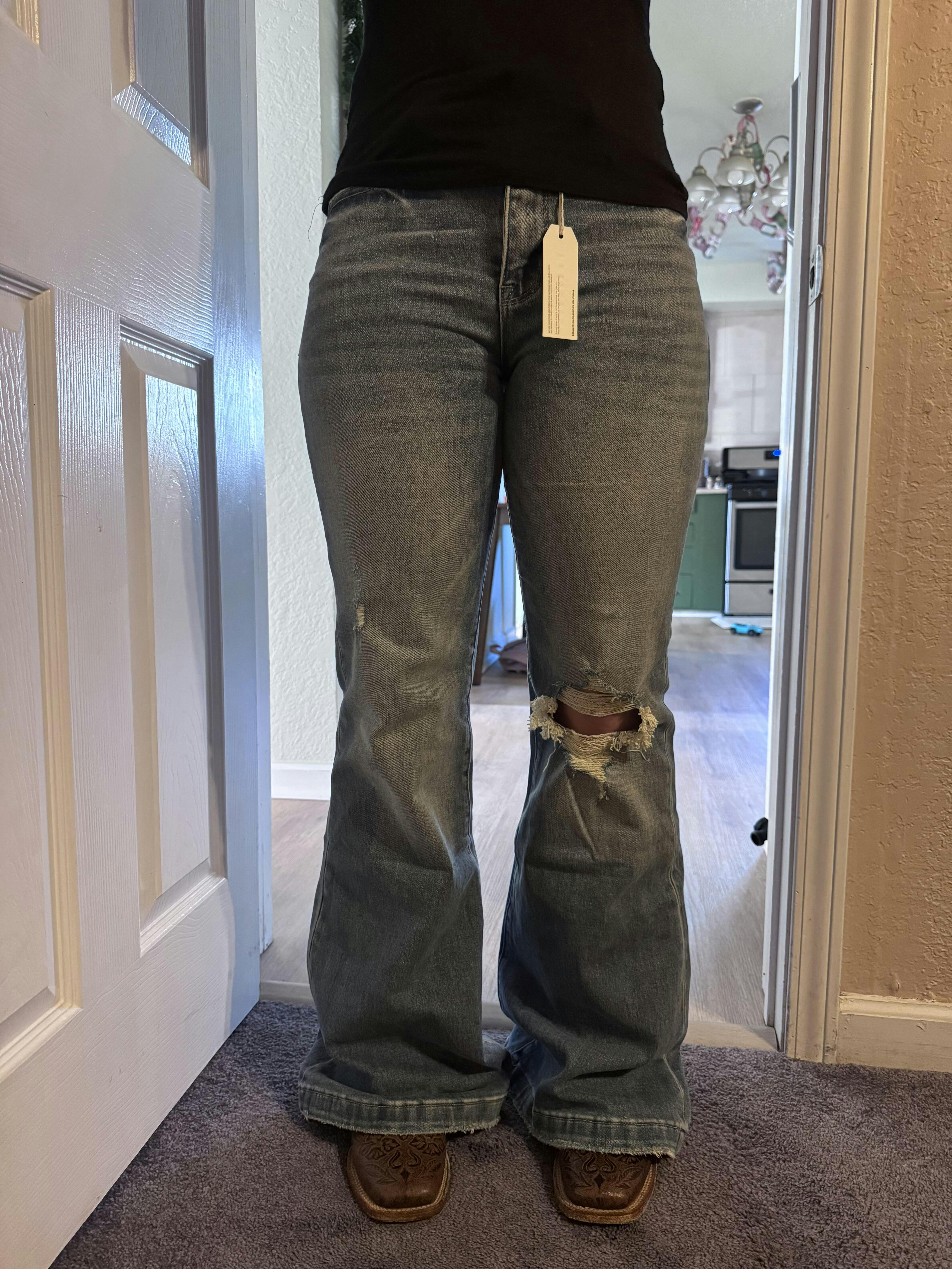 PETRA153 Candace DARK WASH Super High Rise Distressed Flare Jeans