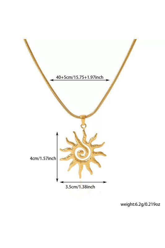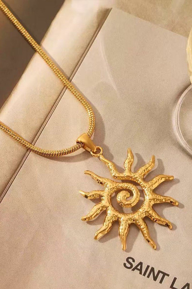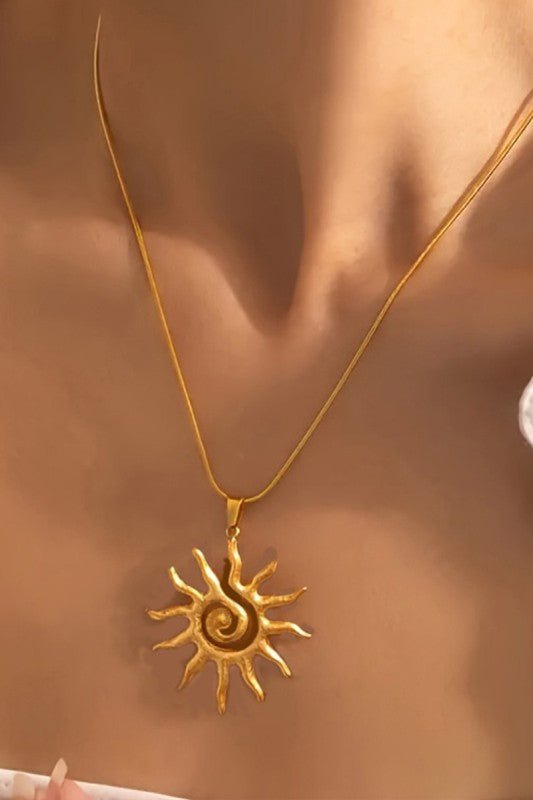 A little glow you can wear every day. The Luna Soleil Necklace features a sculpted sun pendant on a smooth gold chain, giving you that warm, celestial shimmer without being too bold.