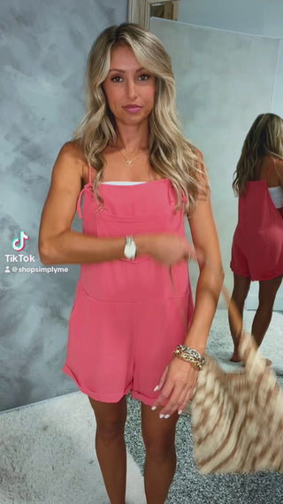 Size L/Coral - Coastal Cutie Tie Strap Romper