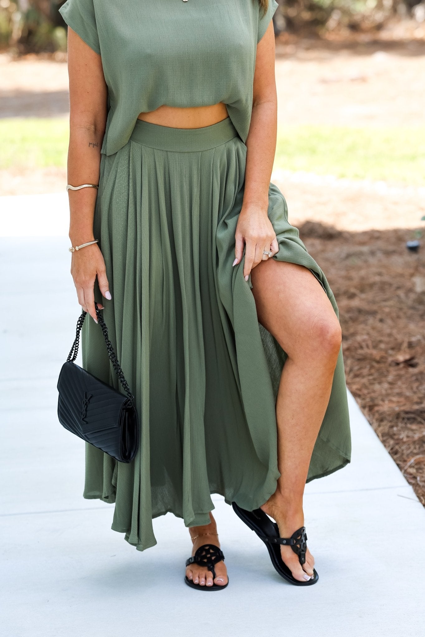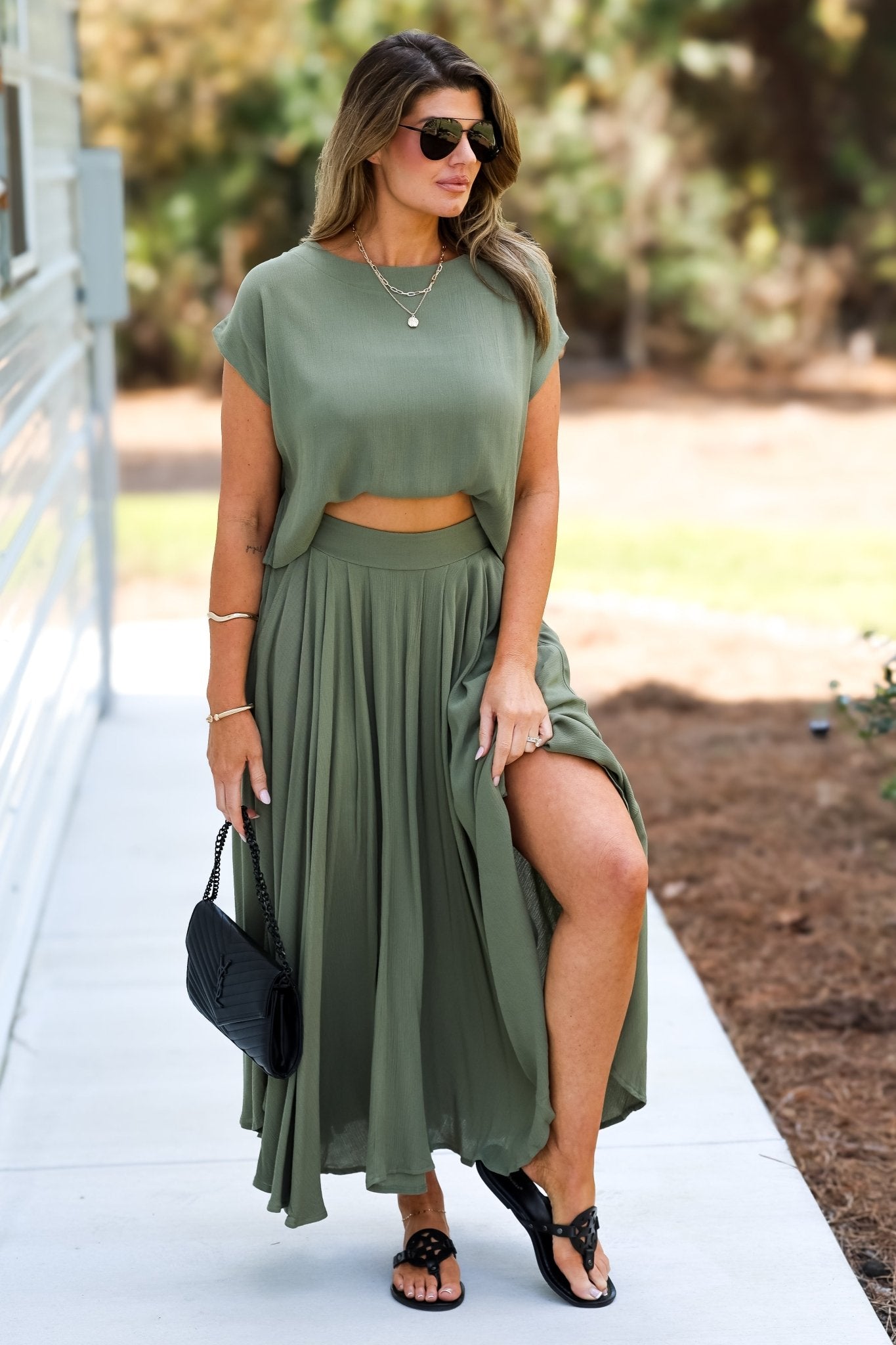 Sunkissed Ease Dusty Light Olive Crop Top Skirt SET
