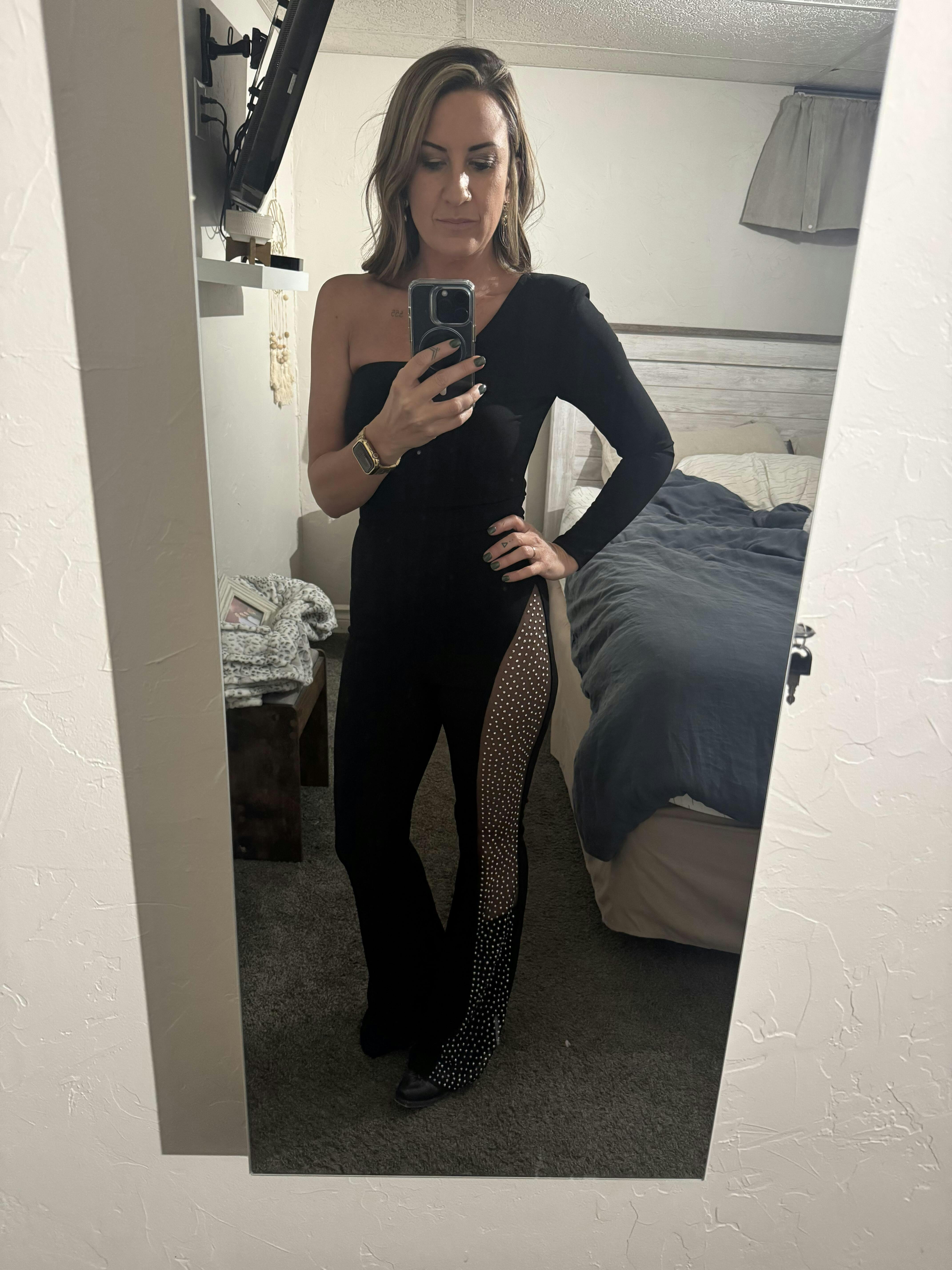 SIZE L - One Shoulder Rhinestone Jumpsuit
