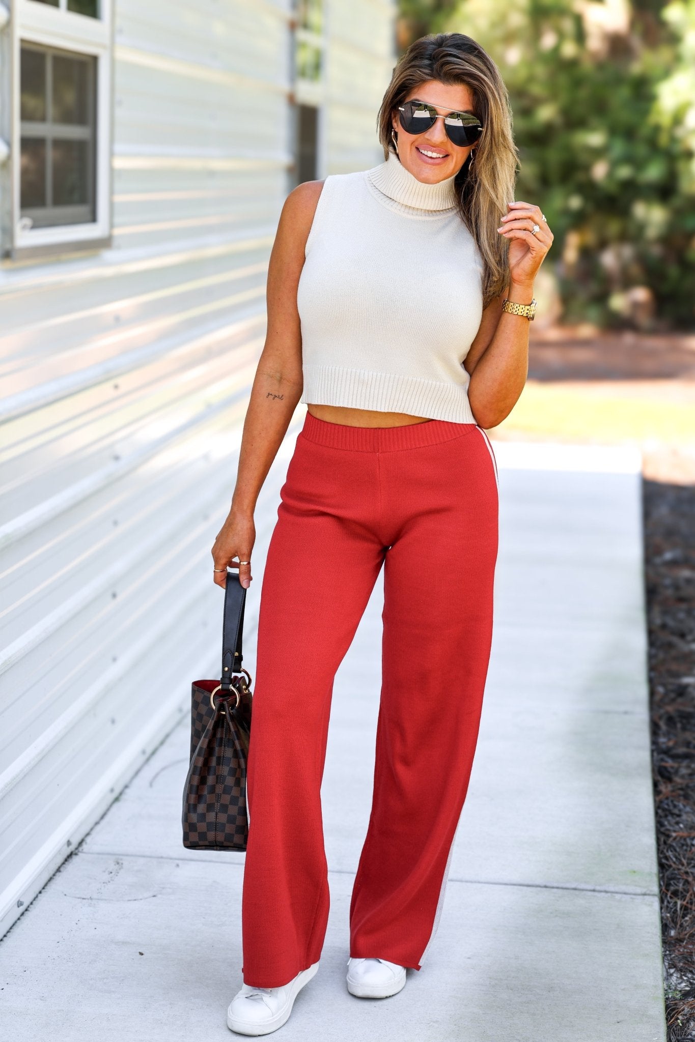 The Camden Knit RED Side Stripe Straight Knit Pants