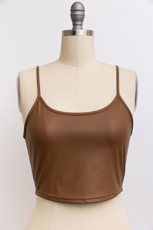 Camel Faux Leather Crop Cami Top