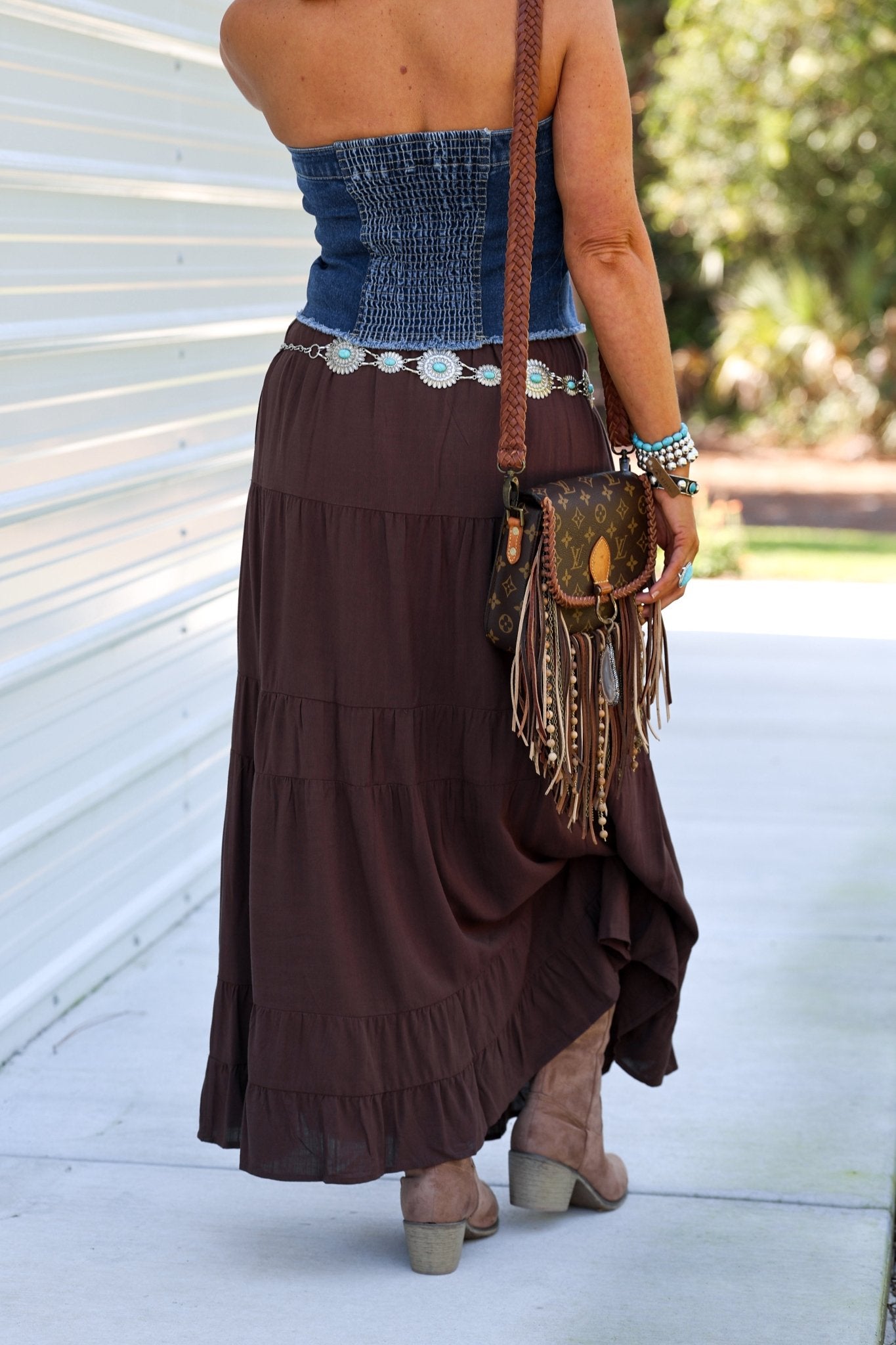Meet your new go-to maxi skirt for every season. This rich chocolate-brown beauty has that breezy linen look with a soft, flowy feel you’ll love.