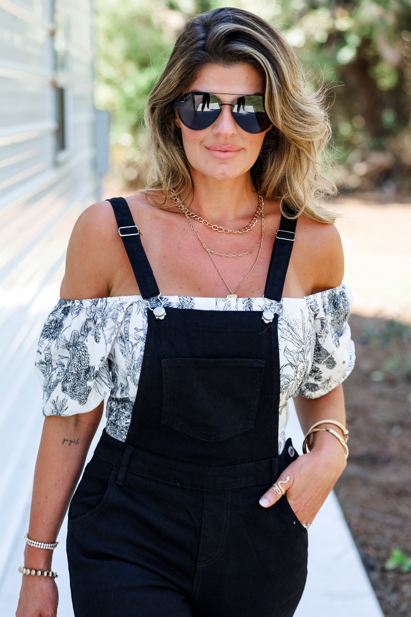 Britt is5'6 size 4/6 34dd wearing a size Medium. Overalls