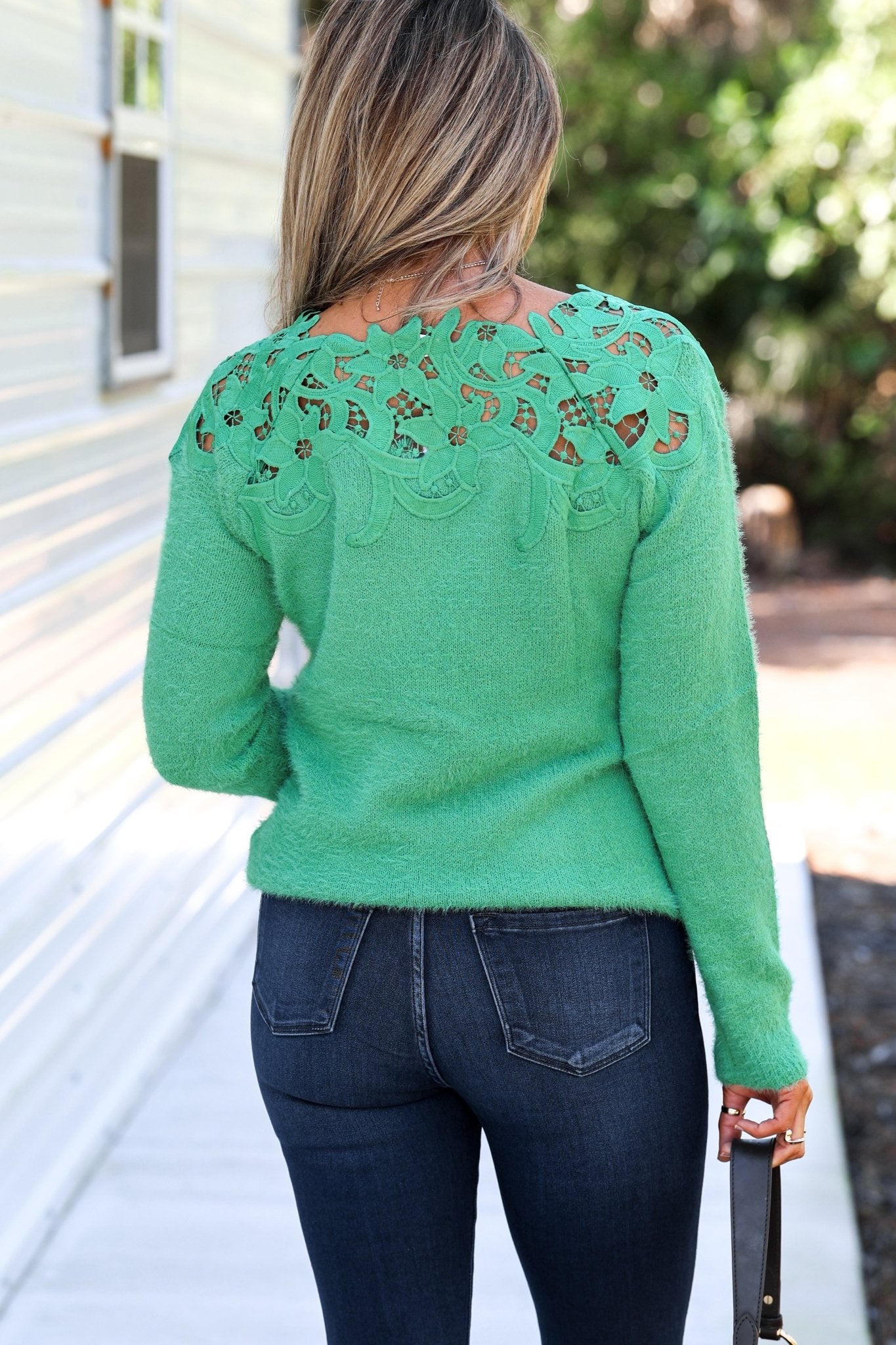 Meet the Elise Lace Neck Sweater, the cozy knit with just the right touch of pretty. That soft eyelash texture keeps it casual and comfy, while the lace neckline adds a little something special (no necklace needed).