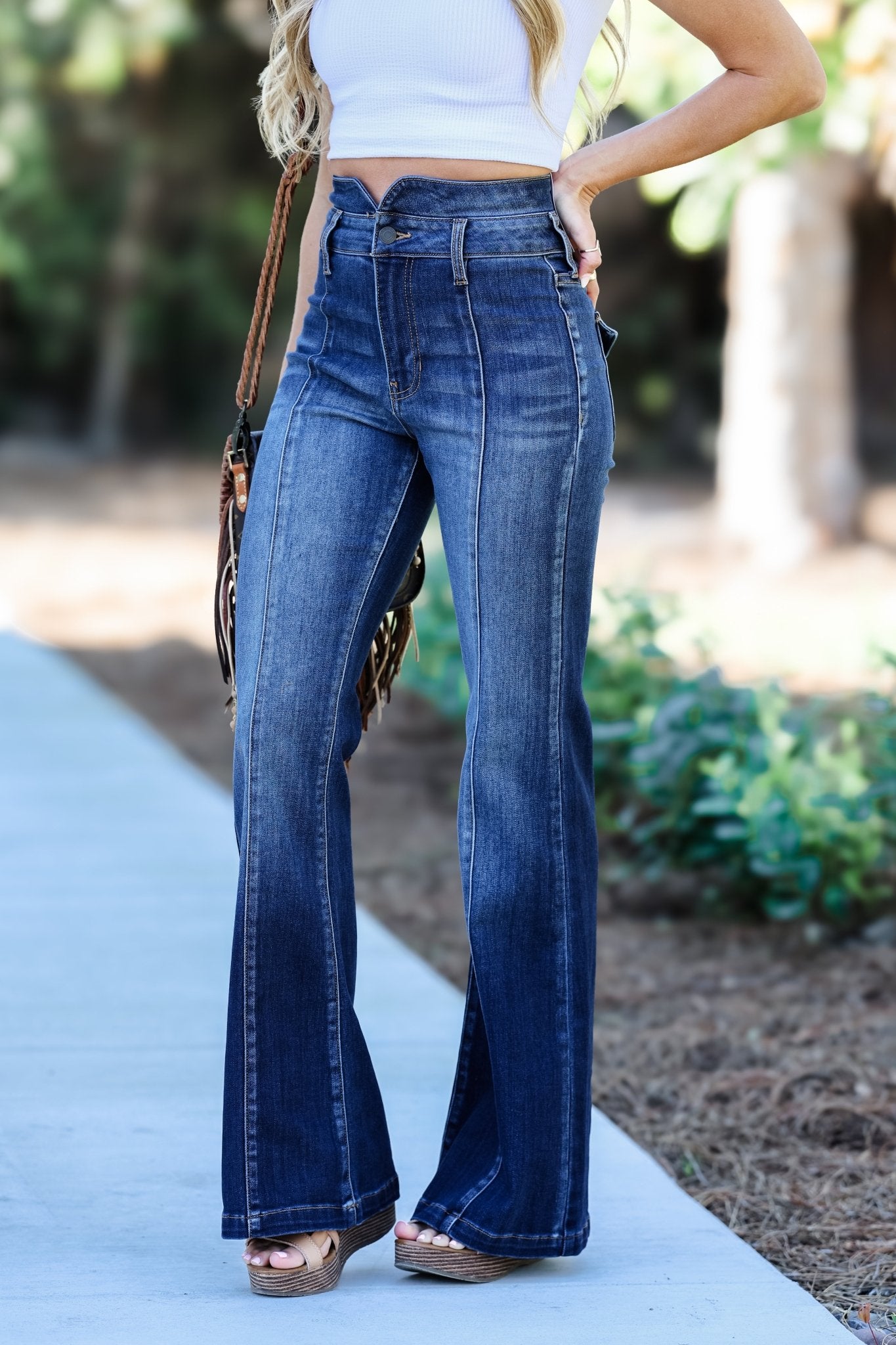 CELLO Caroline Super High Rise Seamed Flare Jeans
