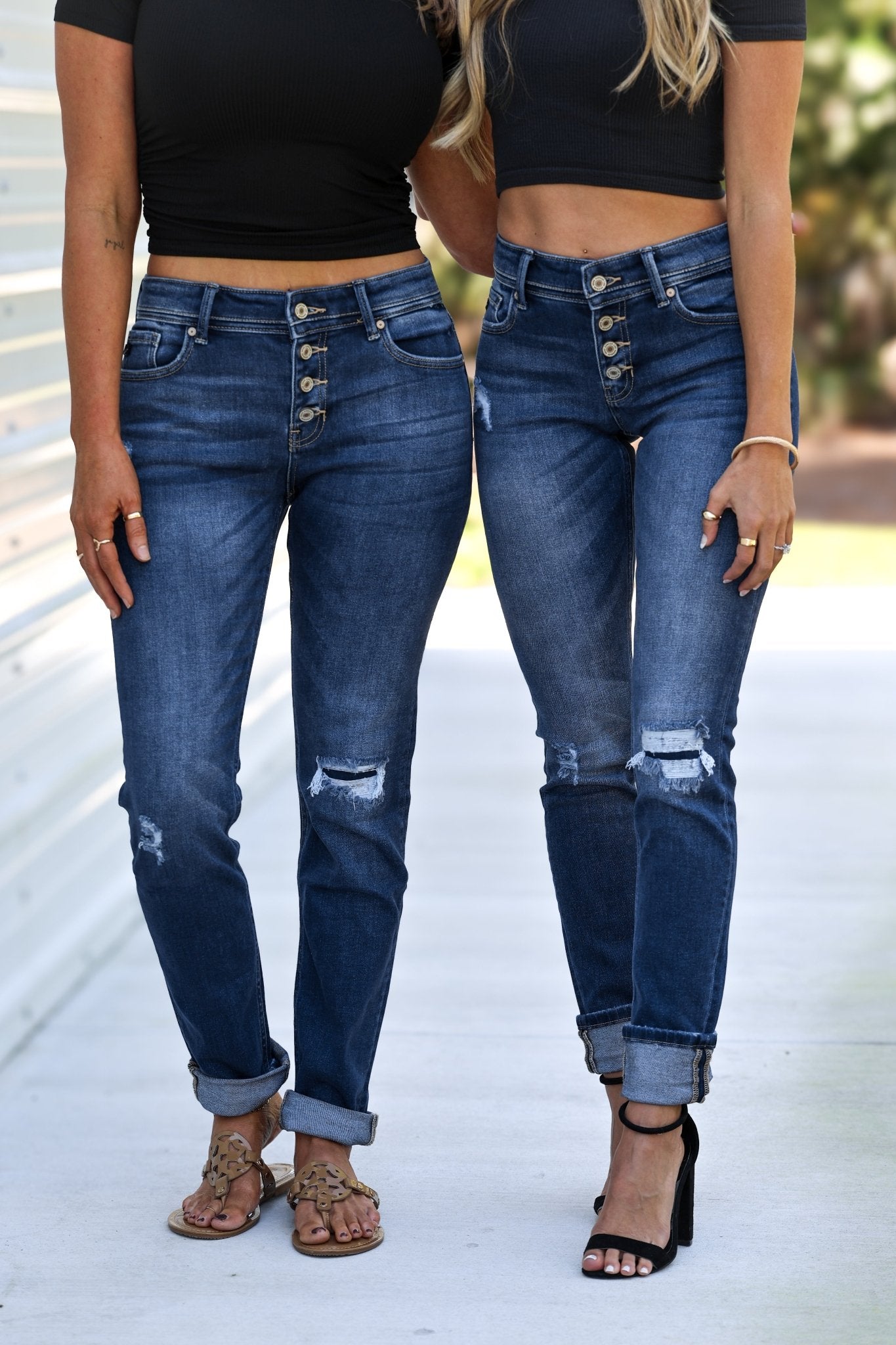 Classic straight denim with a modern touch. KANCAN Eternity Mid Rise Slim Straight Leg Jeans with comfort stretch.