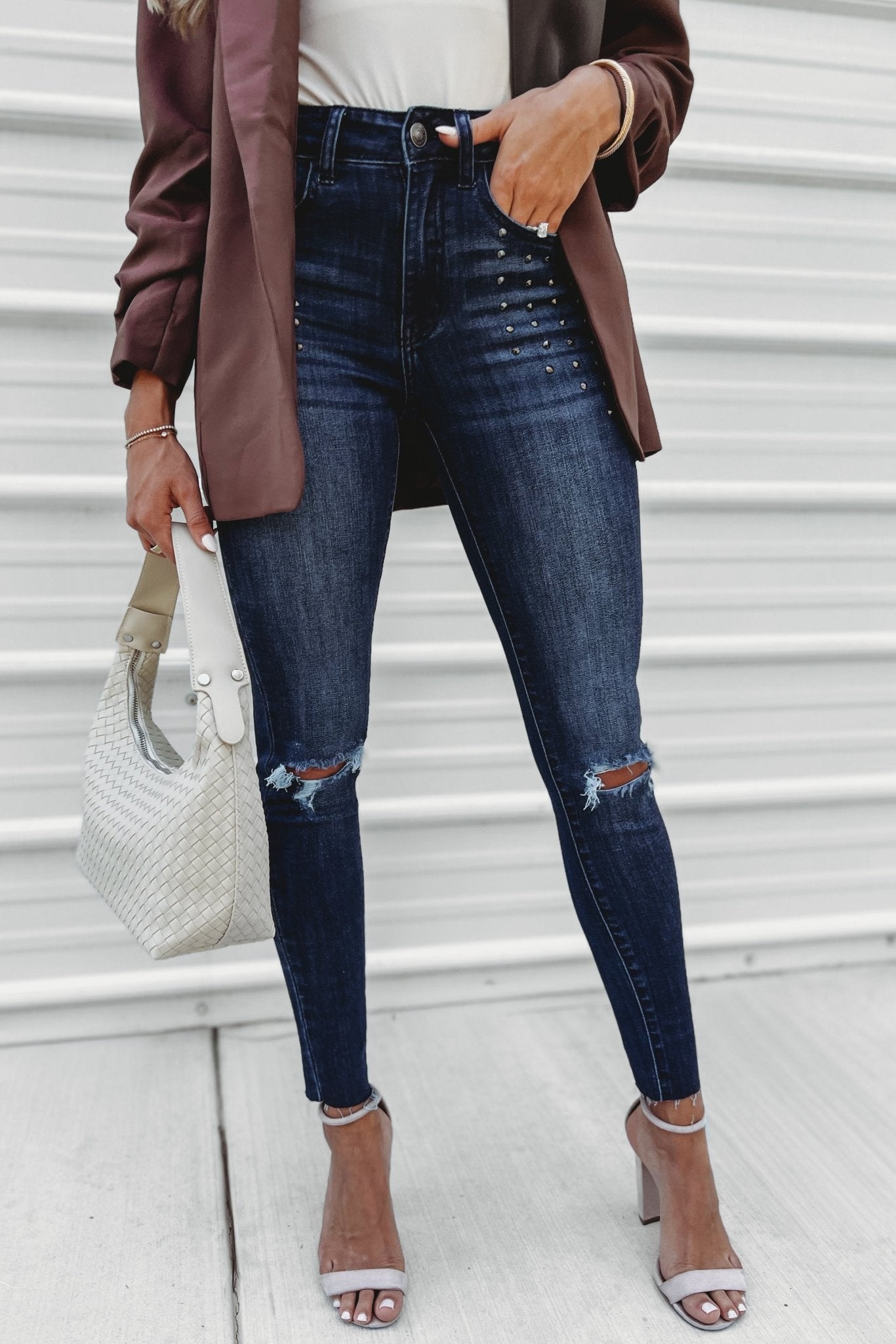 Styling Tip: Pair with a fitted tank or bodysuit to let the stud details take center stage.