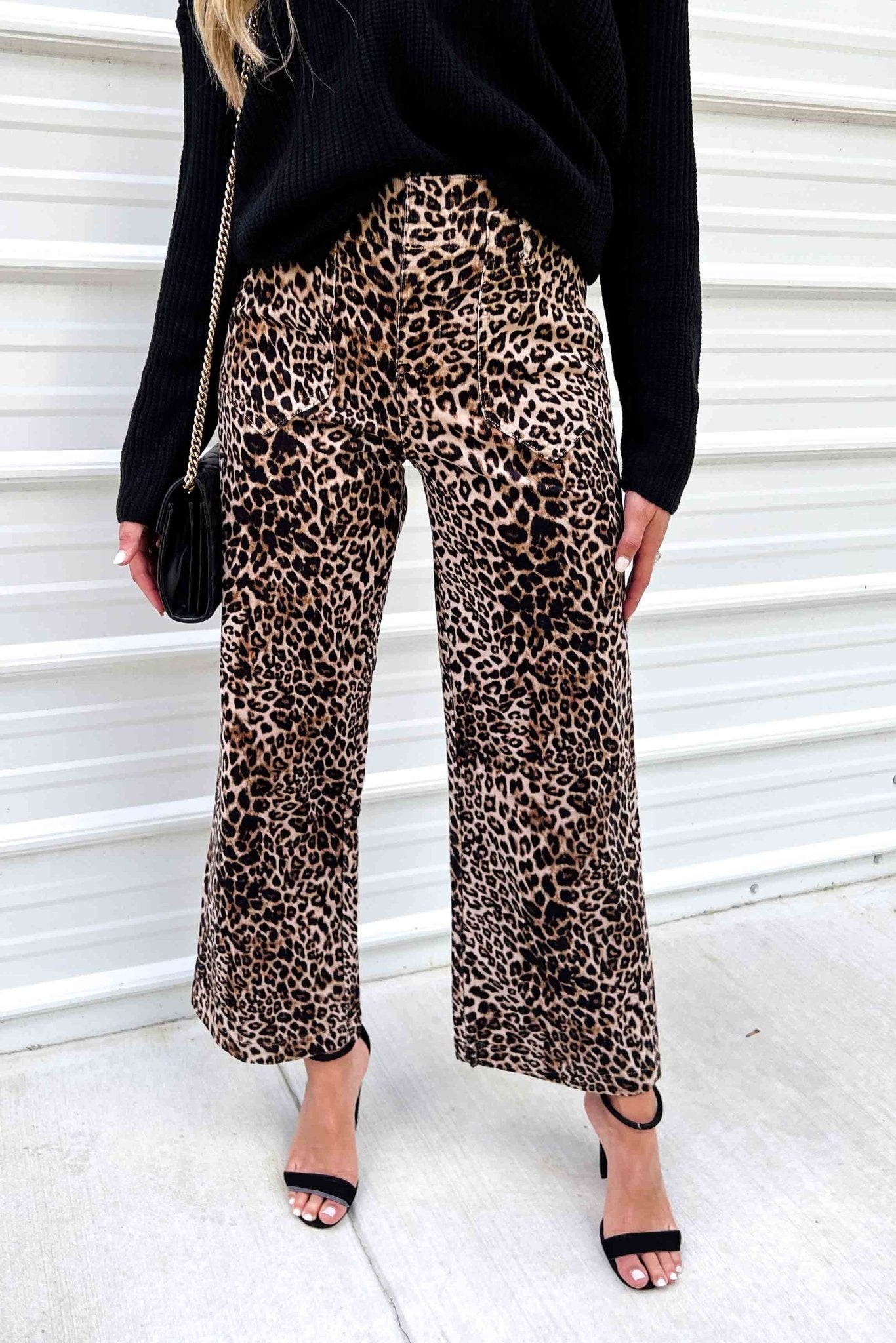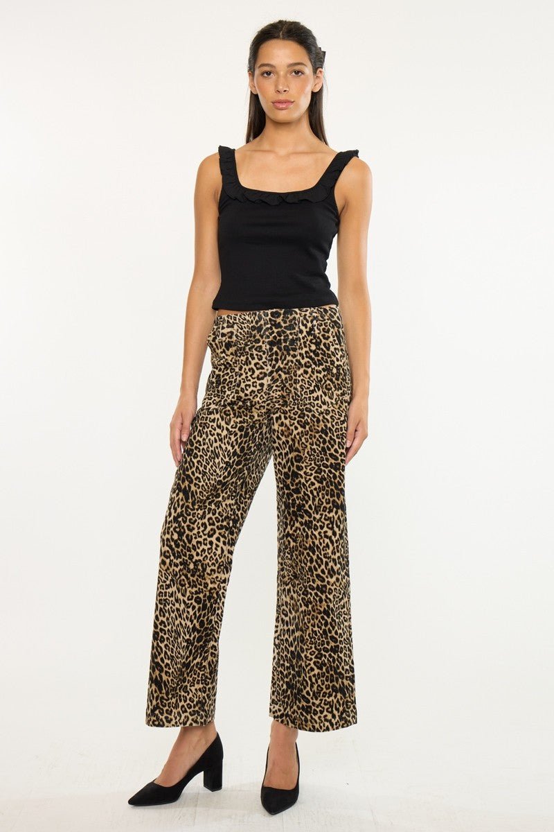 Unleash your wild side with the Tilly Ultra High Rise Wide Leg Jean. These aren't your average pants, they're crafted from a soft corduroy material and decked out in a fierce leopard print that promises to turn heads. It’s the perfect statement piece to elevate your casual or dressed-up looks.