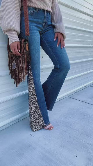 (SHIPS 10/30) Kenzie Mid Rise Super Flare Leopard Jeans
