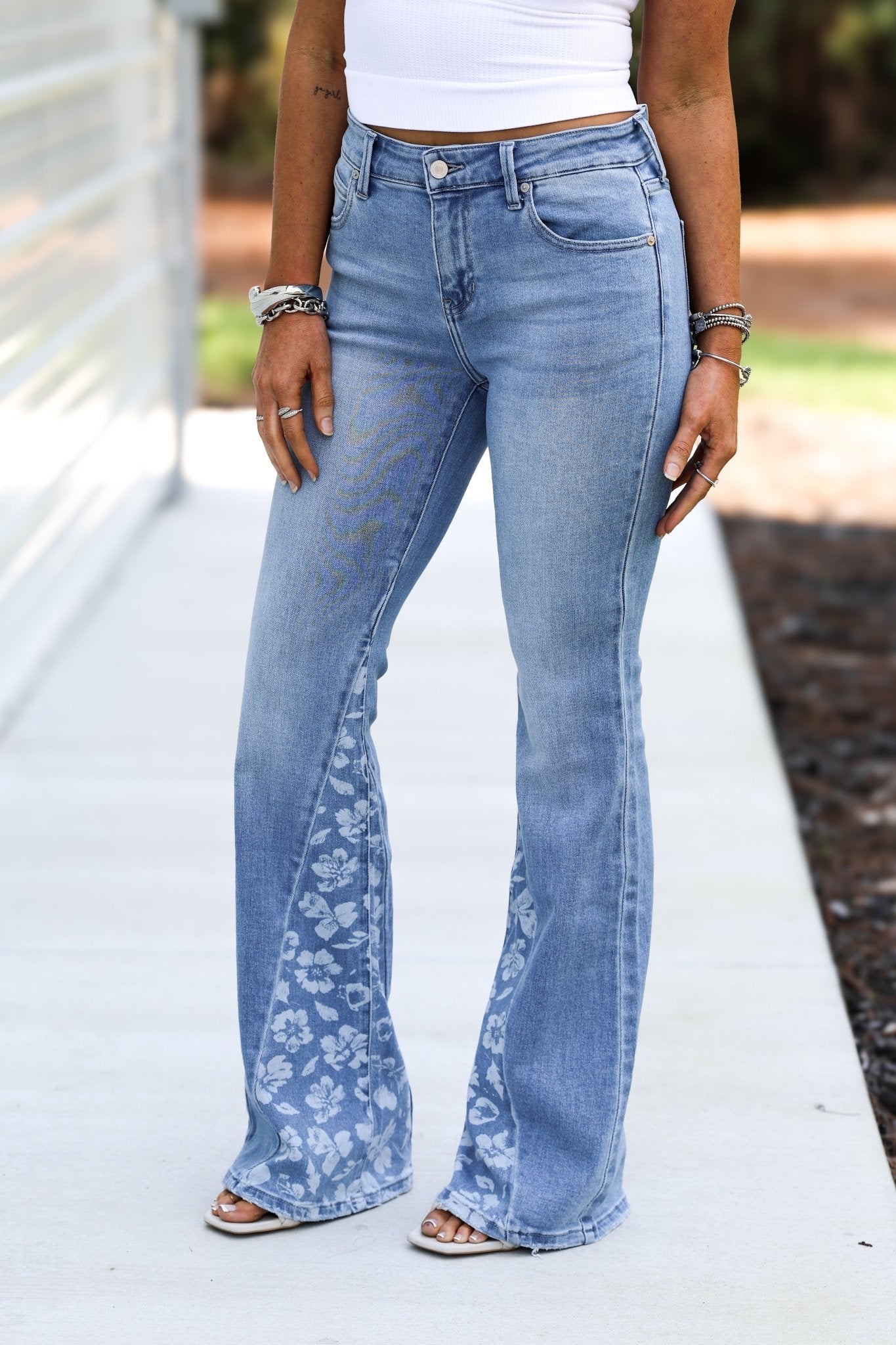 (PREORDER) Lily Mid Rise Floral Flare Jeans