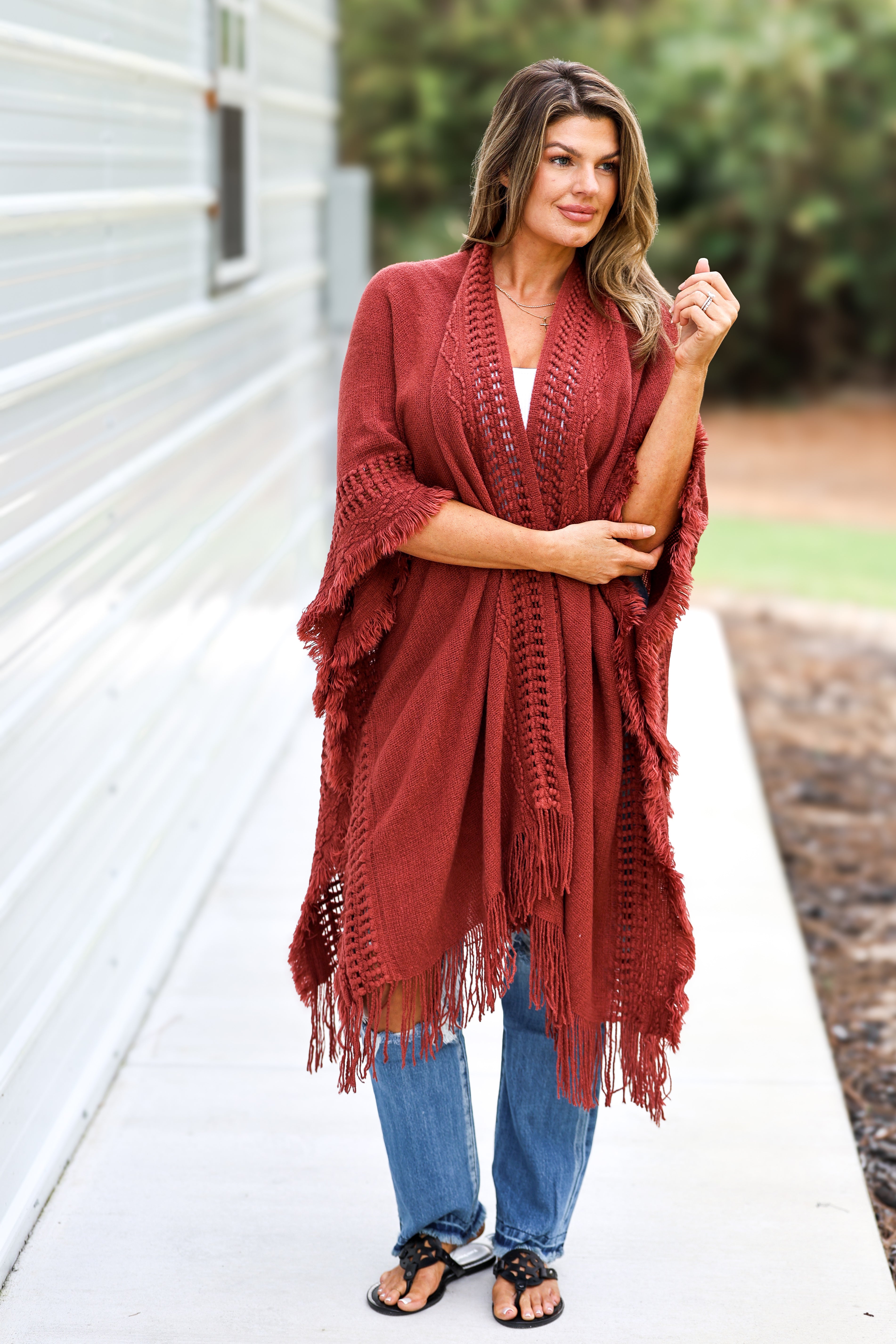 Easy, breezy, and made for layering. The Callie Frayed Knit Ruana Kimono has that relaxed boho vibe we all love... lightweight with an open-knit texture and softly frayed edges. It drapes beautifully over tanks, tees, or dresses, adding instant texture and warmth without feeling heavy. From fall festivals to coffee runs, this one’s a must for laid-back styling all year long.