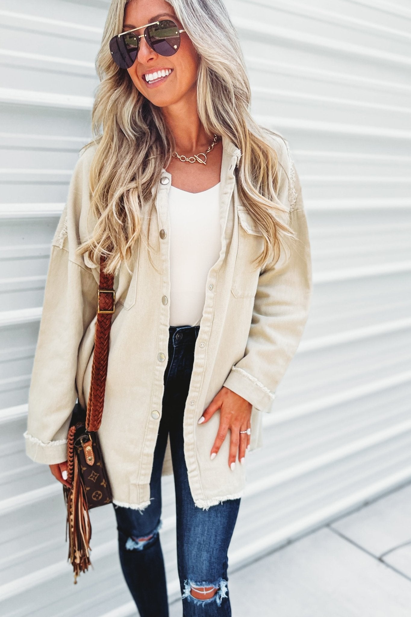 A little edgy, a lot cool...The Lennon Skull Jacket is your new layering favorite. Made in a washed denim with an oversized fit and studded skull design across the back, it’s the statement piece your closet’s been waiting for. Wear it over a graphic tee and jeans for a laid-back vibe or throw it on with leggings and sneakers for off-duty cool.