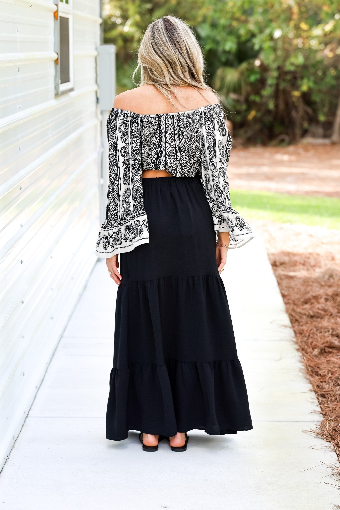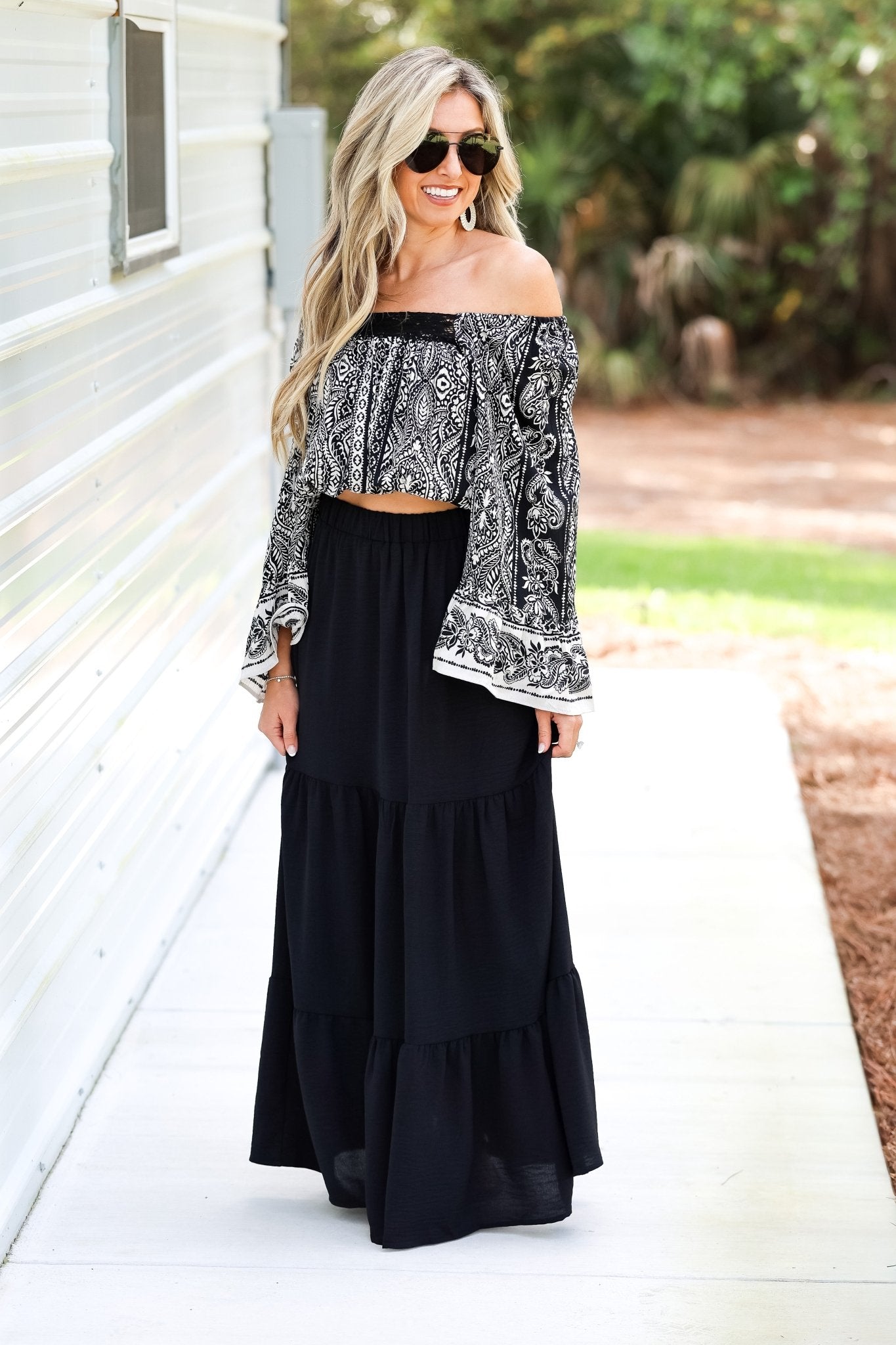 Embrace the perfect bohemian vibes with this maxi skirt. Features a flowy fit and lightweight fabric, this skirt is both comfortable and stylish! It's perfect for everything from casual outings to beachside strolls!