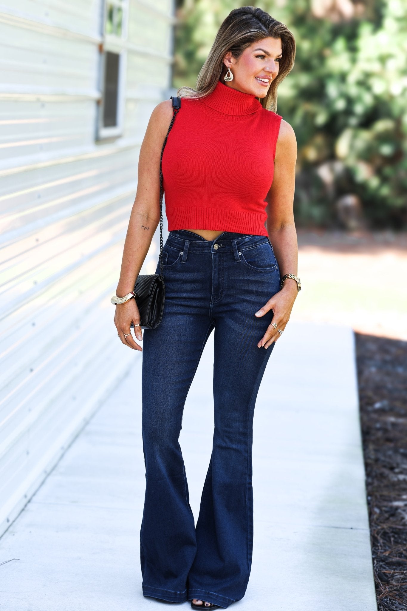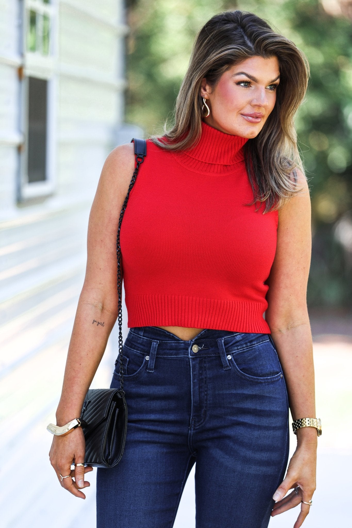 RED Another Time Sleeveless Turtleneck Sweater Crop Top