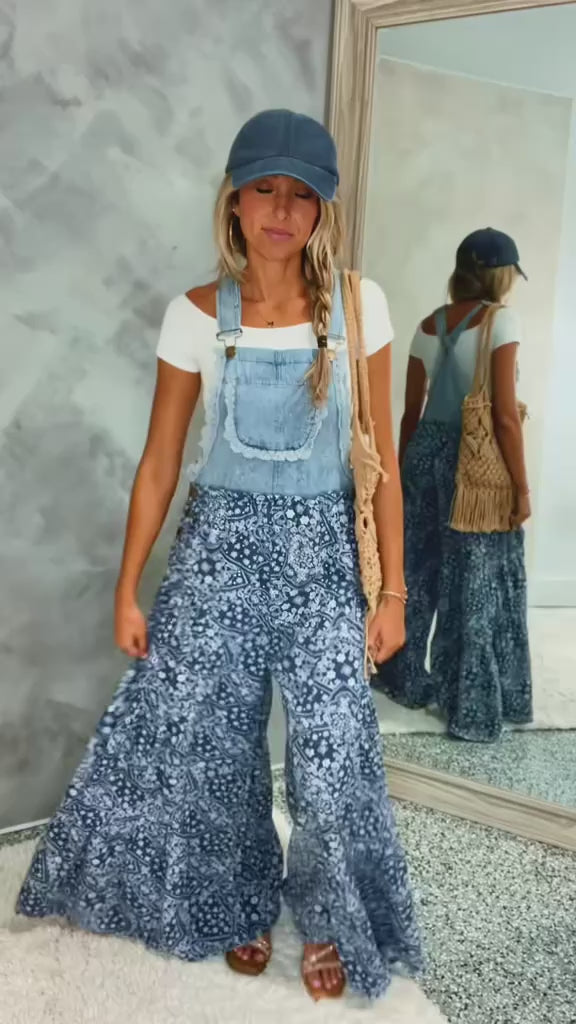 Size S - Free Spirit Paisley Lace Trim Wide Leg Overalls