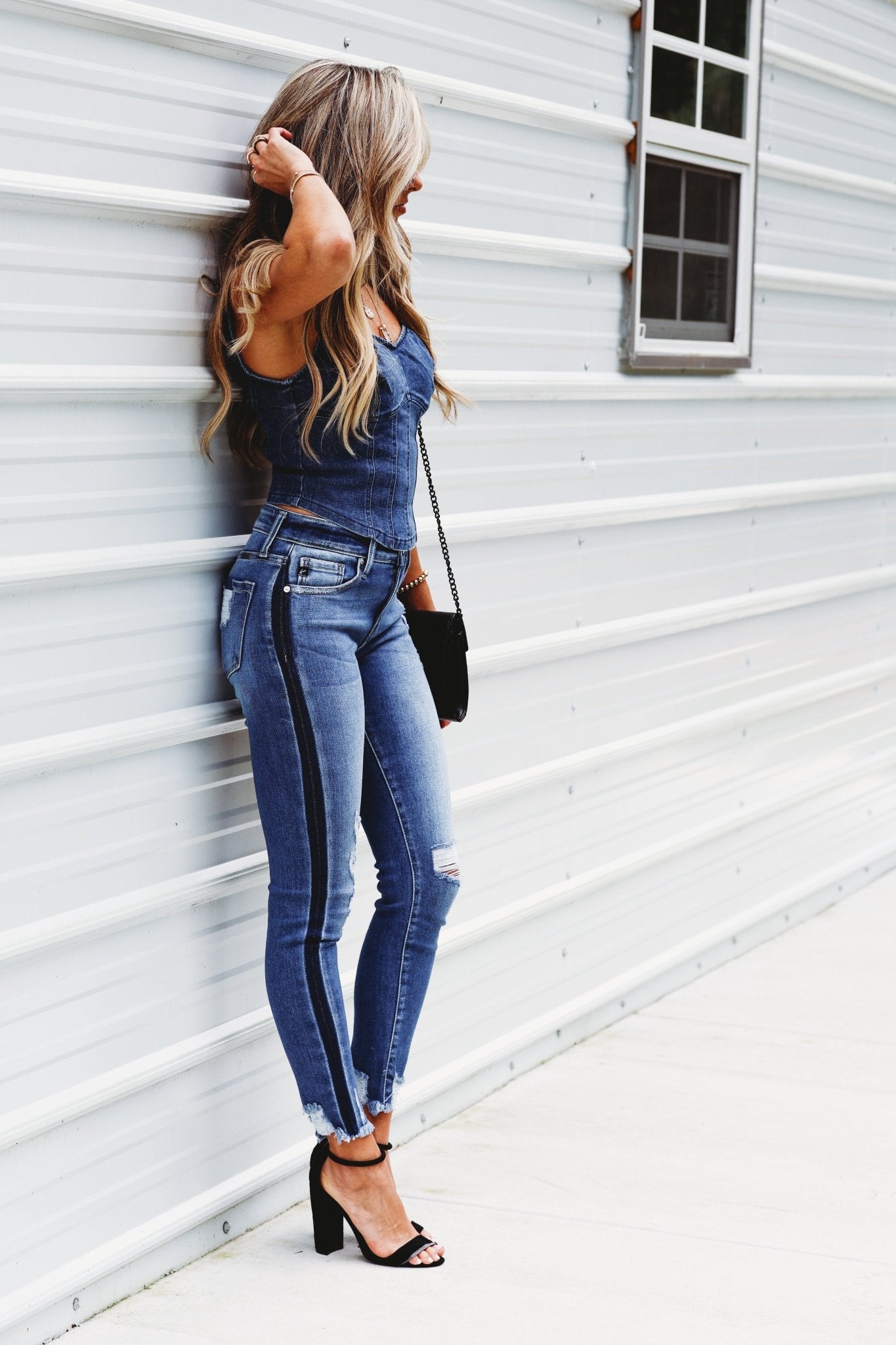 A denim moment you’ll wear on repeat. The Brynlee Corset Top features a sweetheart neckline, structured seams, and just the right amount of stretch for a flattering fit that still feels comfortable. The back zipper makes it easy to slip on, and the vintage-inspired wash pairs perfectly with white denim or flowy skirts.
