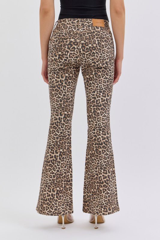 CELLO Blakeley Leopard Mid Rise Flare Jeans
