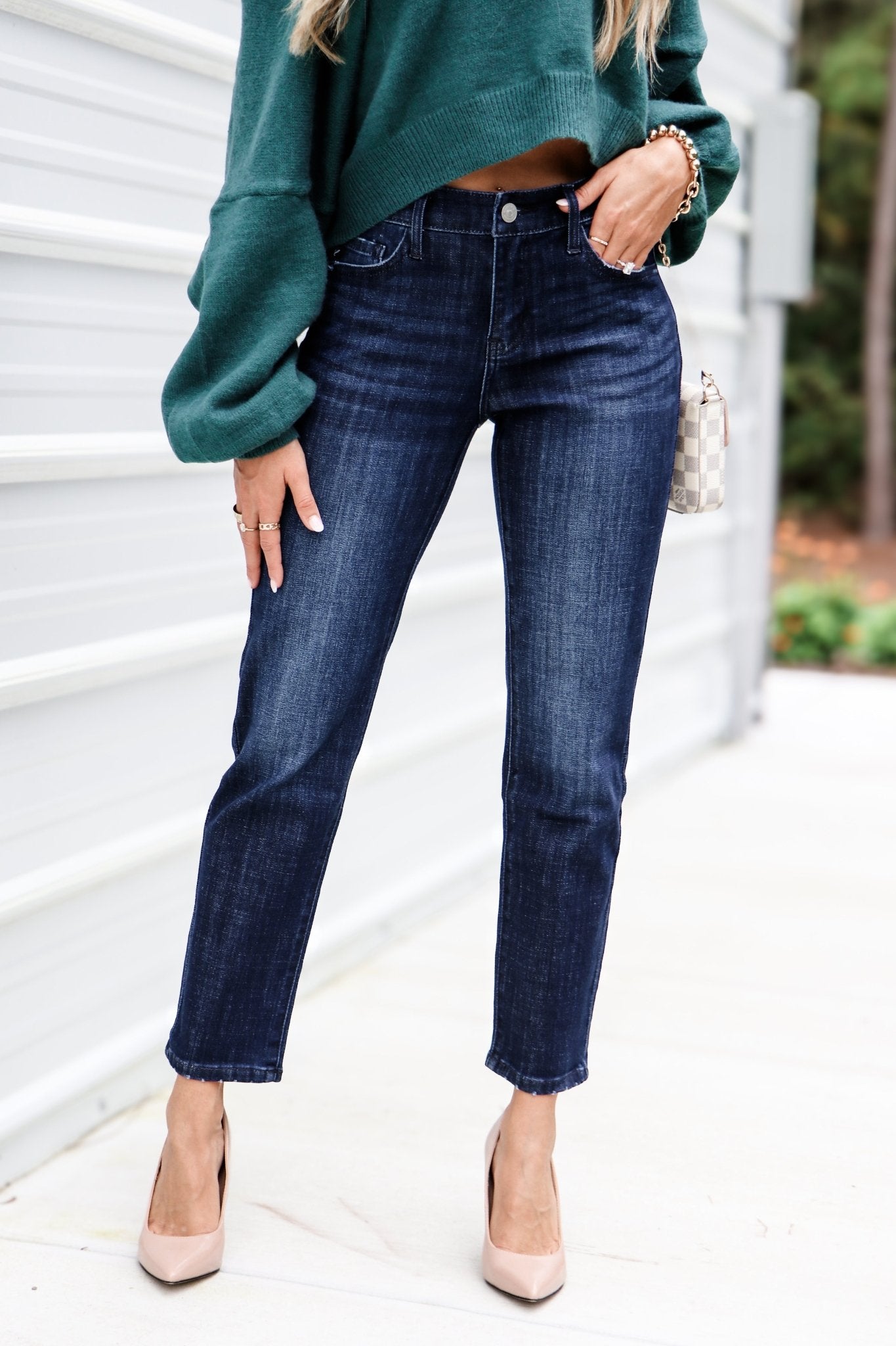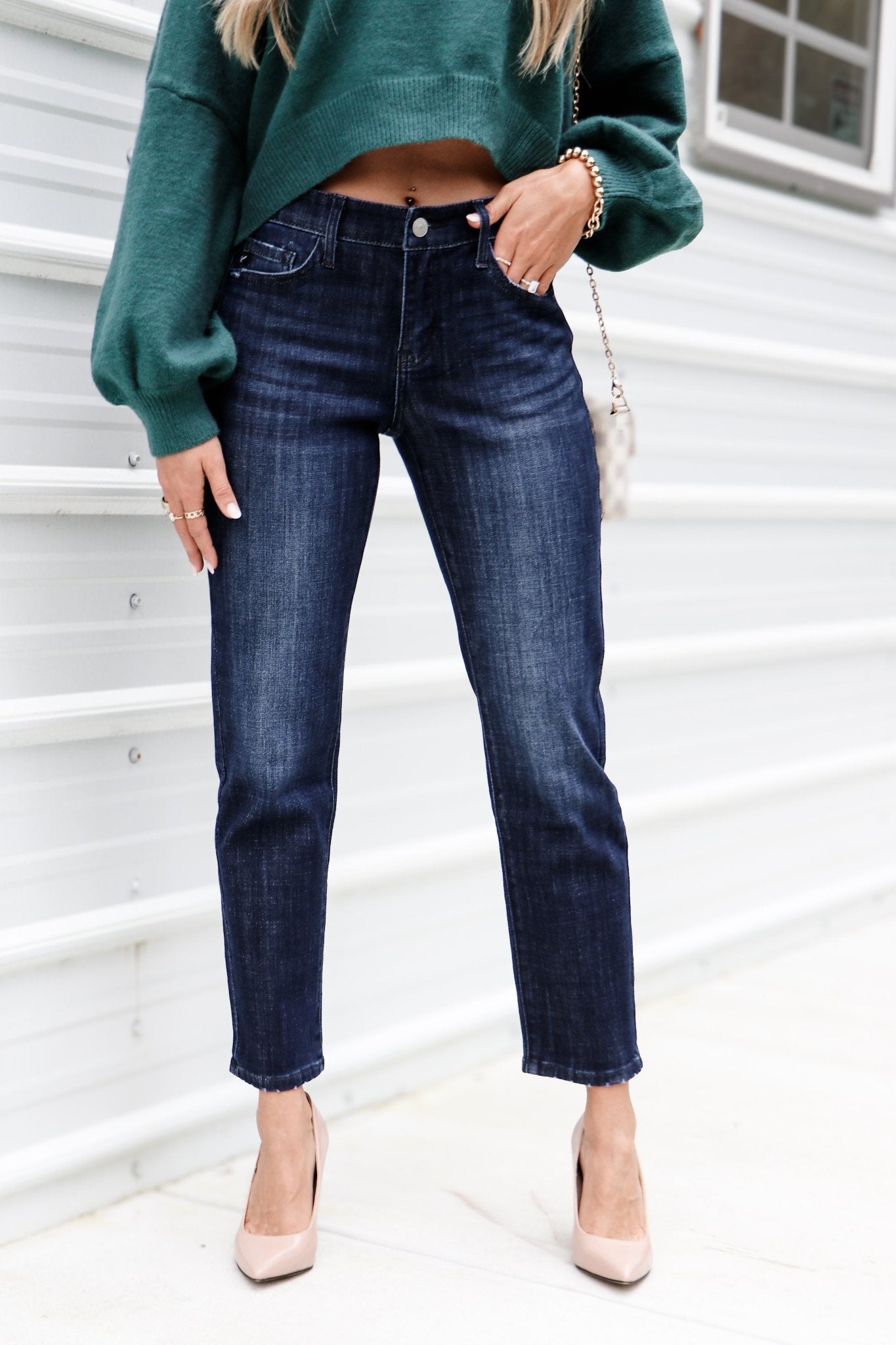 Meet Drew ... the modern update on a classic boyfriend jean. This dark wash pair offers the perfect mix of structure and stretch for an easy, timeless look.