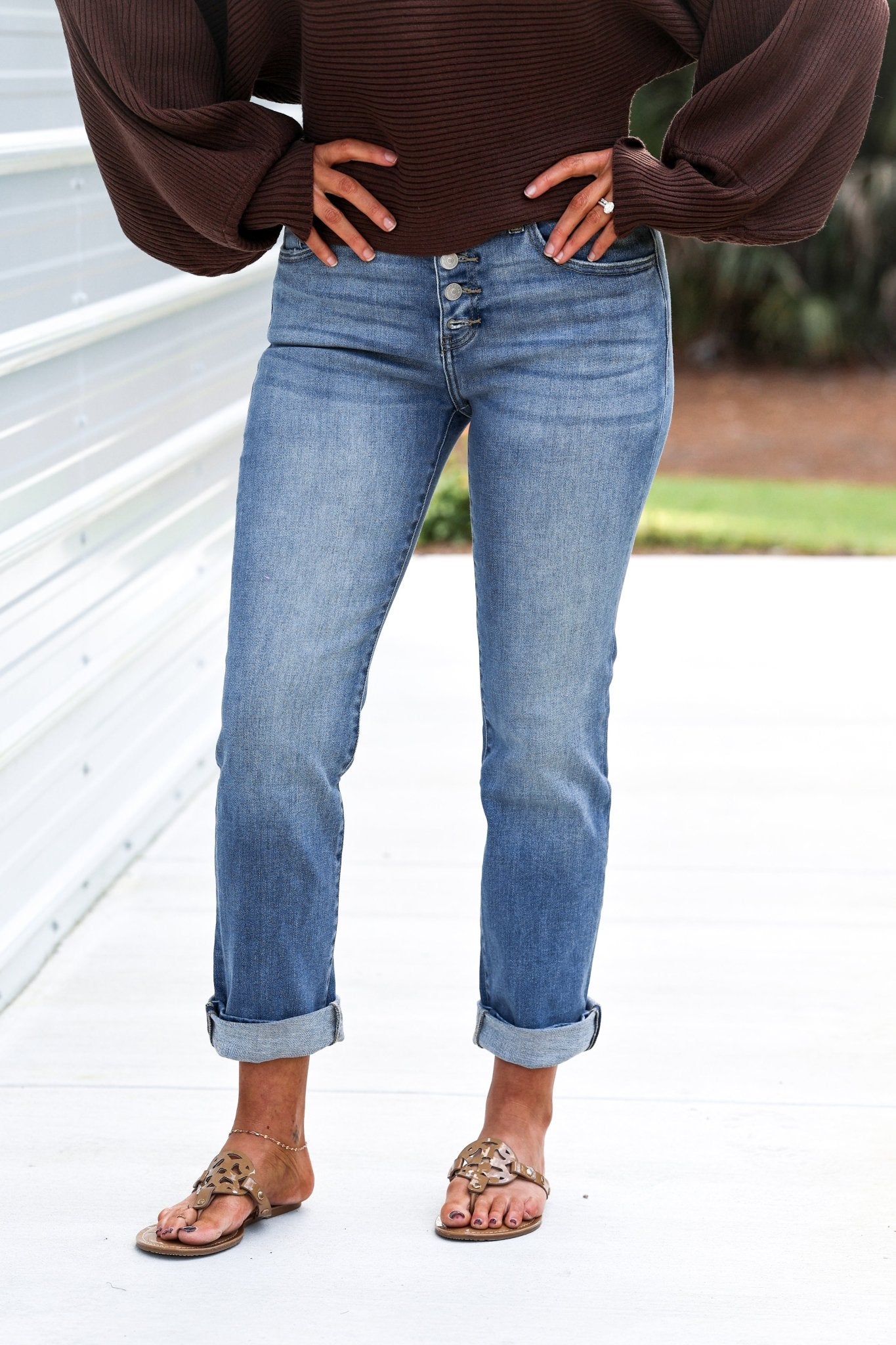 Everyday denim that works with everything. KANCAN Noelle Mid Rise Straight Leg Jeans with soft stretch and a classic clean finish.