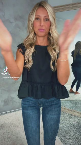 Delicate and dreamy, the Lace Whisper Crochet Sleeve Top features intricate open-knit sleeves, a soft peplum hem, and lightweight cotton comfort. Perfect for casual days or dressed-up afternoons.
