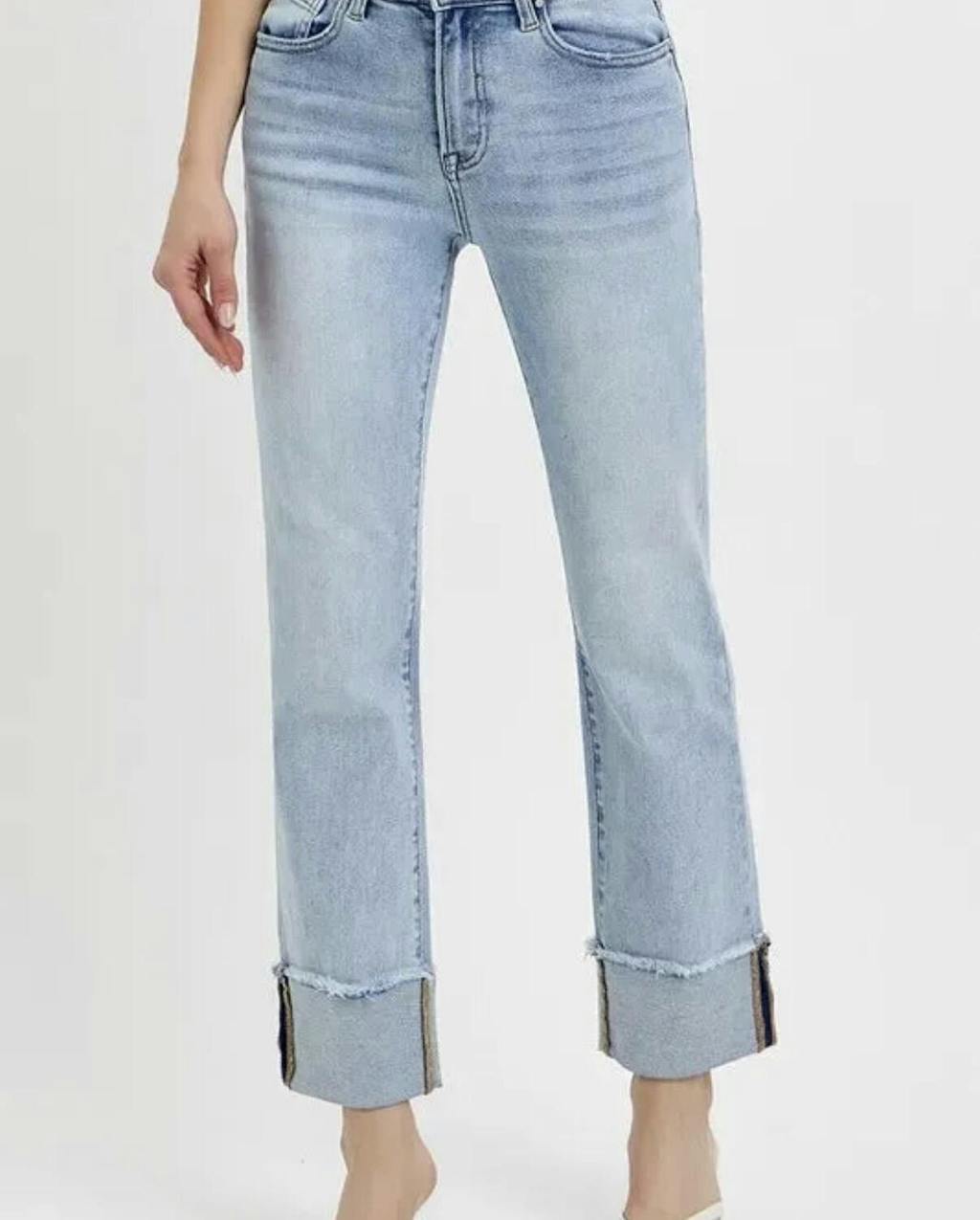 RISEN "Parker" High Rise Straight Cuff Jeans